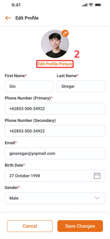 Jika Anda ingin mengubah informasi akun dan mengganti foto profil, Anda dapat menekan tanda pena (1).