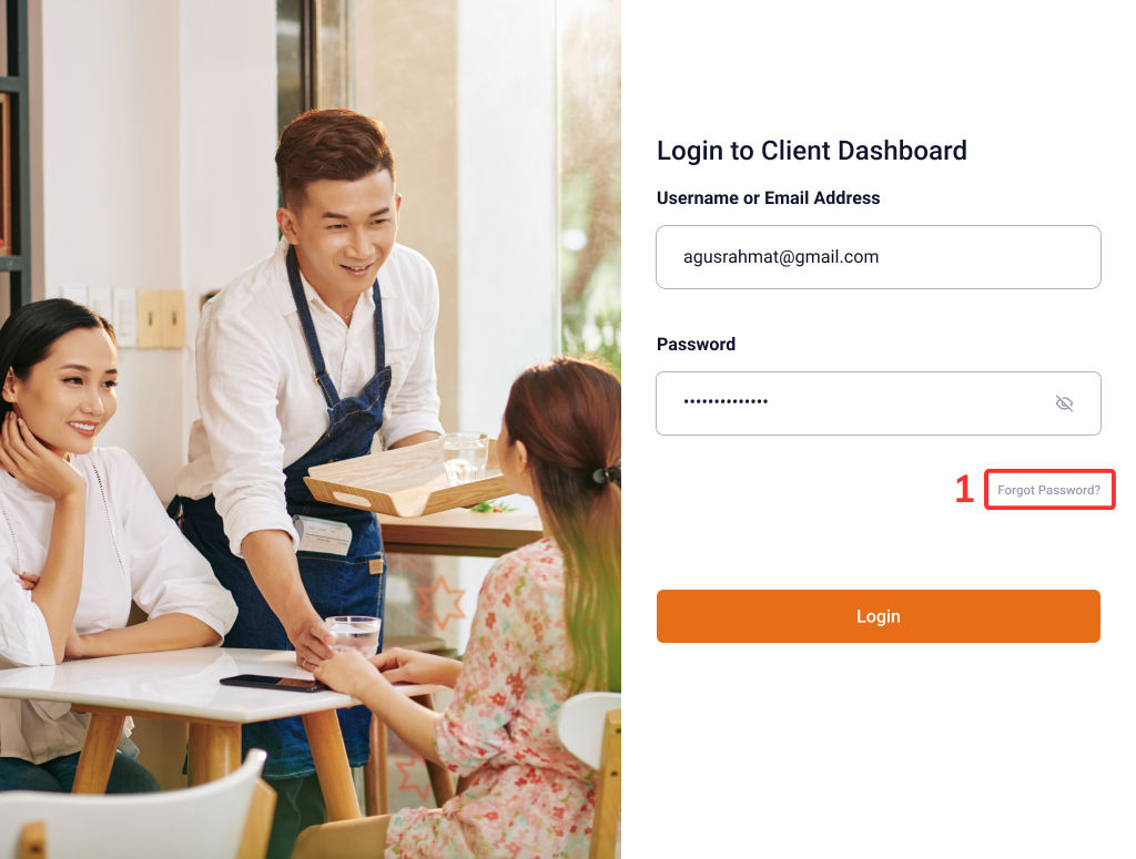 Jika dalam proses login pengguna lupa password, pengguna dapat memilih tombol “Forgot Password” (1).