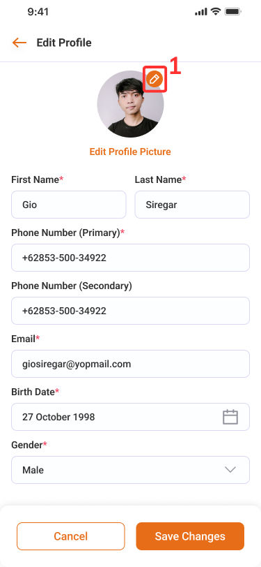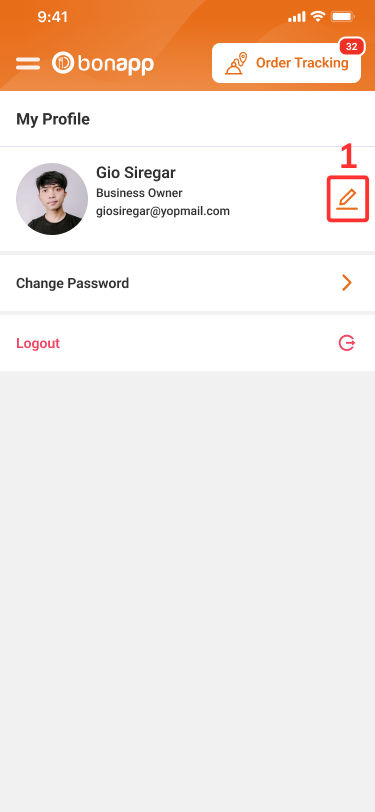 Jika Anda ingin mengubah informasi akun, Anda dapat menekan tanda pena (1).