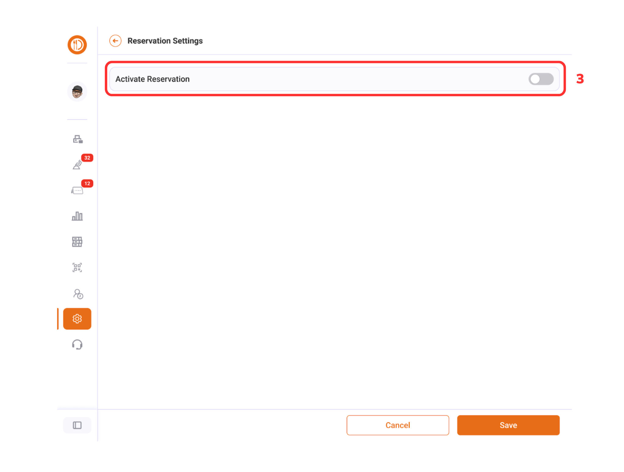 Anda dapat mengaktifkan fitur reservasi dengan mengaktifkan toggle Activate Reservation (3).
