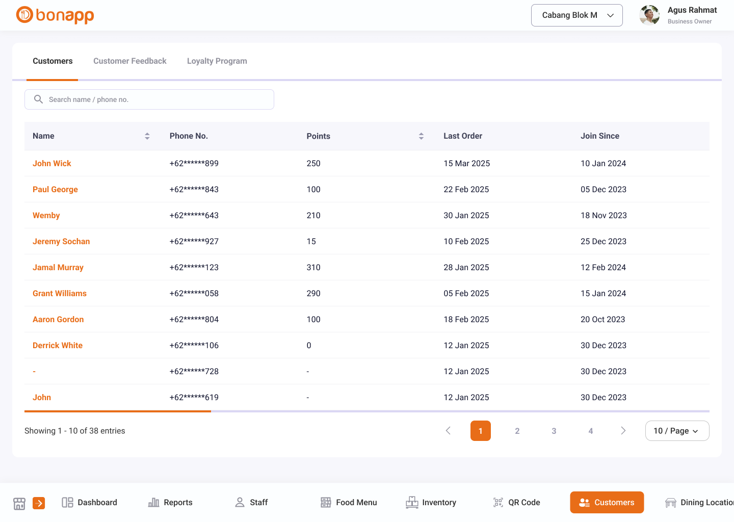 Ketika nomor customer digunakan untuk kirim receipt, data customer dan transaksi tersebut akan tercatat di halaman customer.
