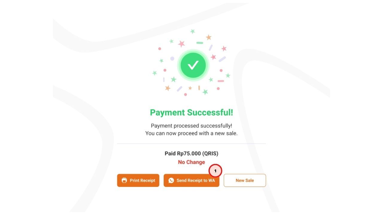 Merchant dapat Send Receipt to WA (1) pada halaman success payment setelah melakukan transaksi.