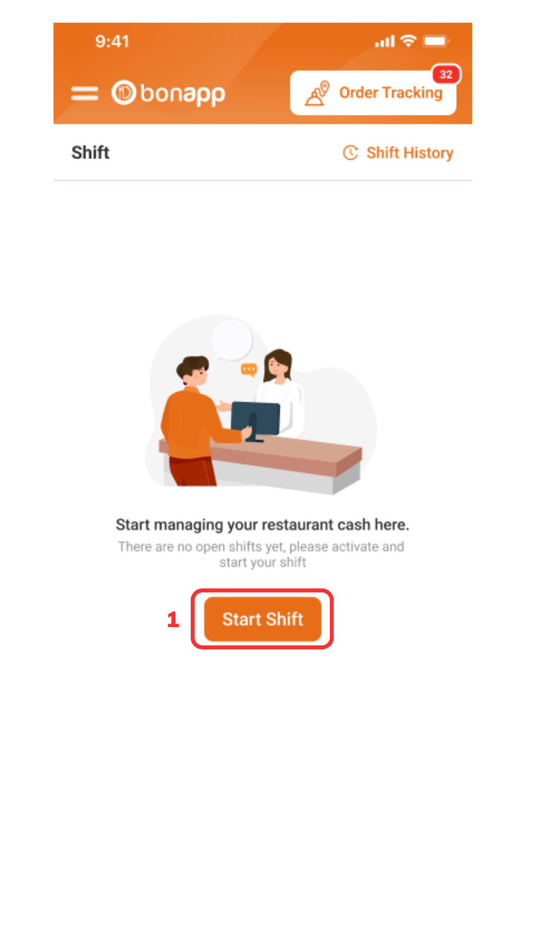 Pilih halaman “Shift” > “Start Shift (1)”.
